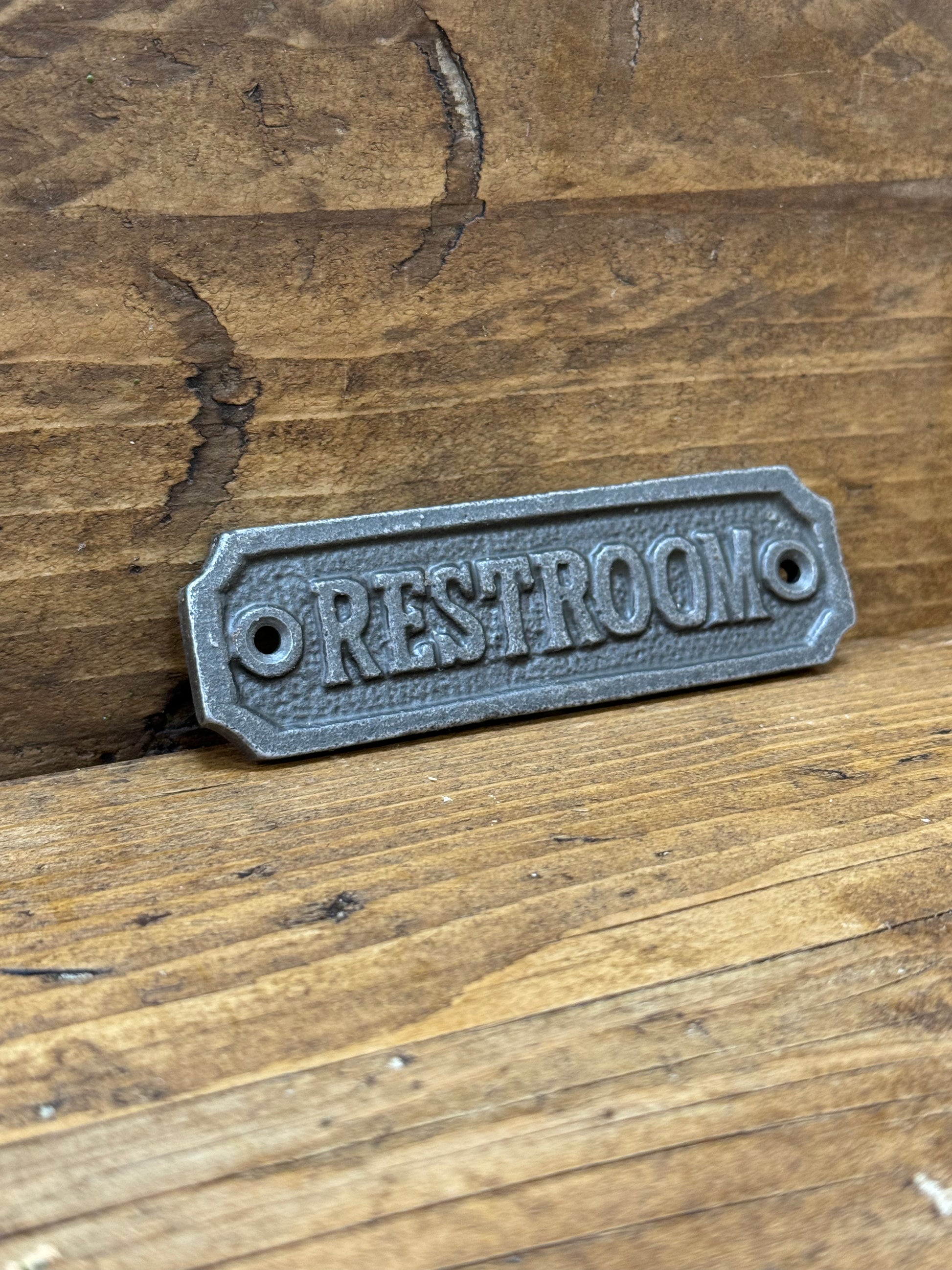 RESTROOM Cast Iron Room Door Plaque, Wall Sign, Rustic, Vintage Style, Industrial, Bathroom, Toilet