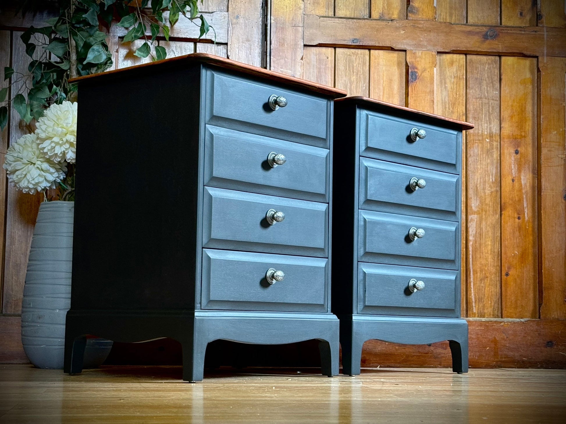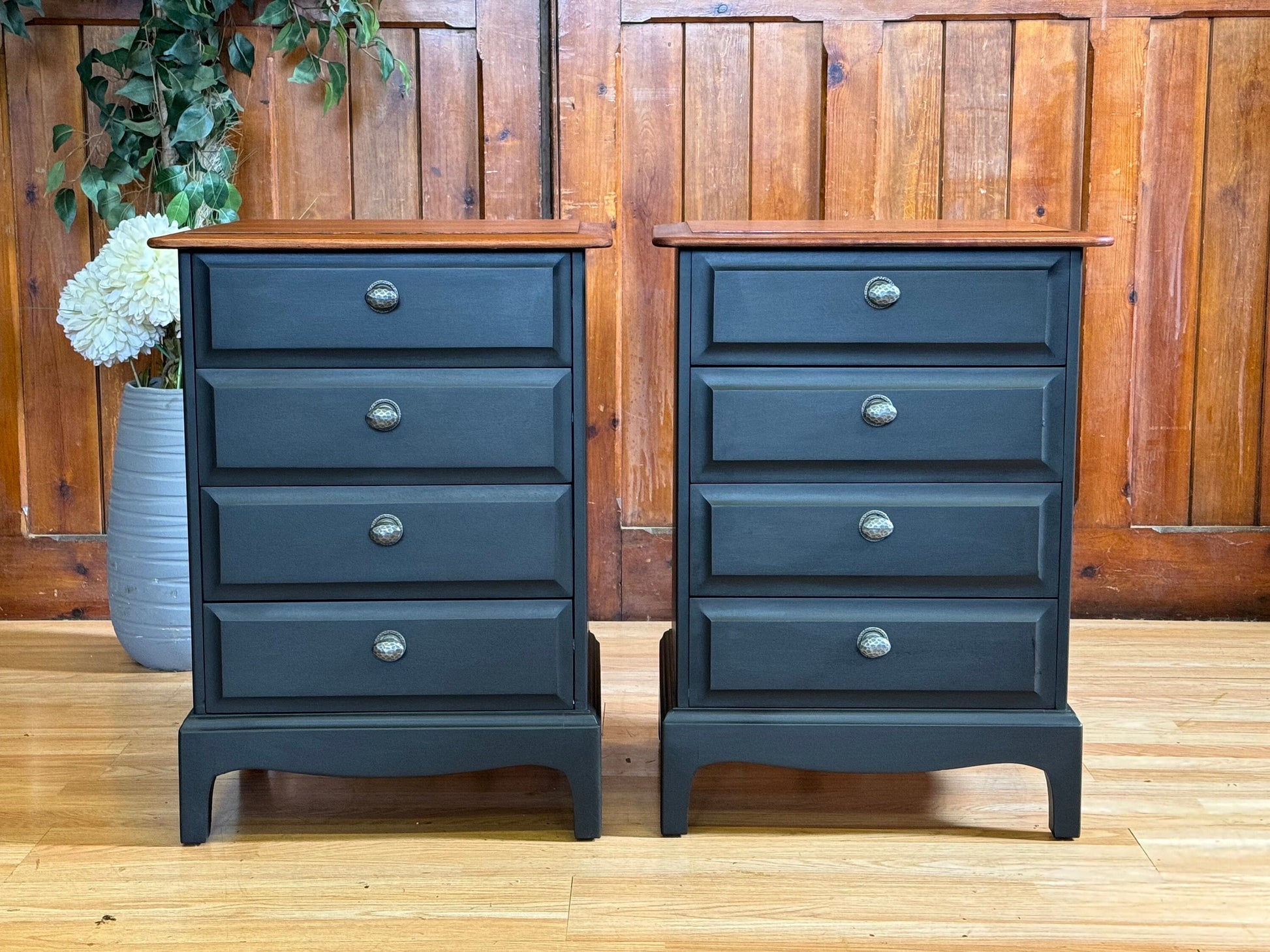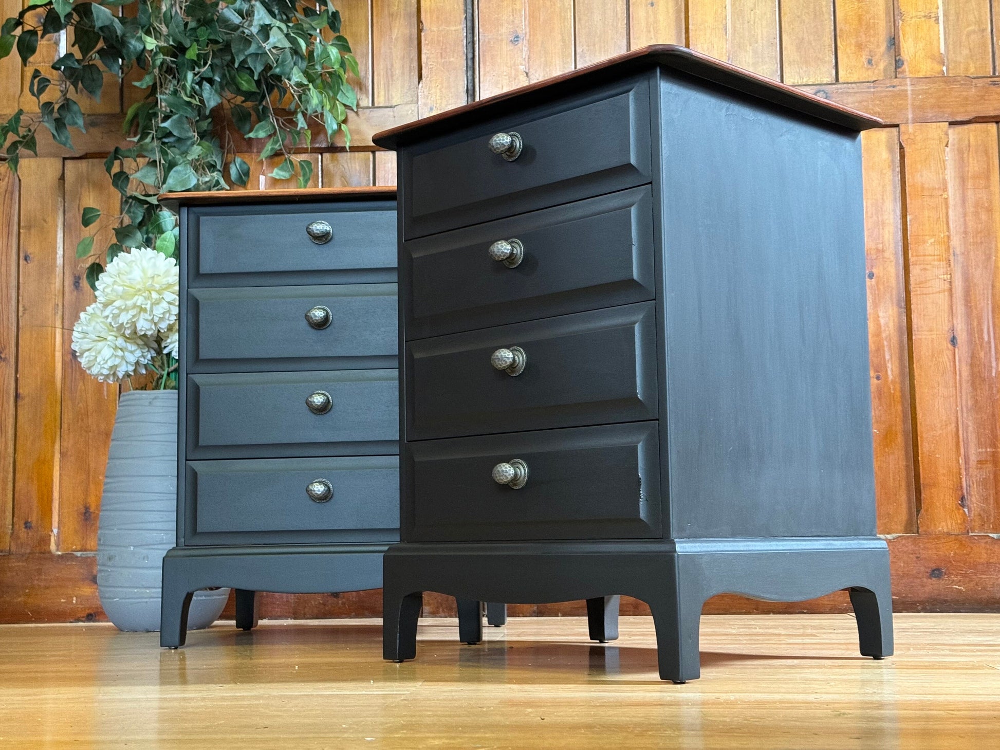 Vintage pair Stag Bedside Tables \ Hand Painted Mahogany Nightstands